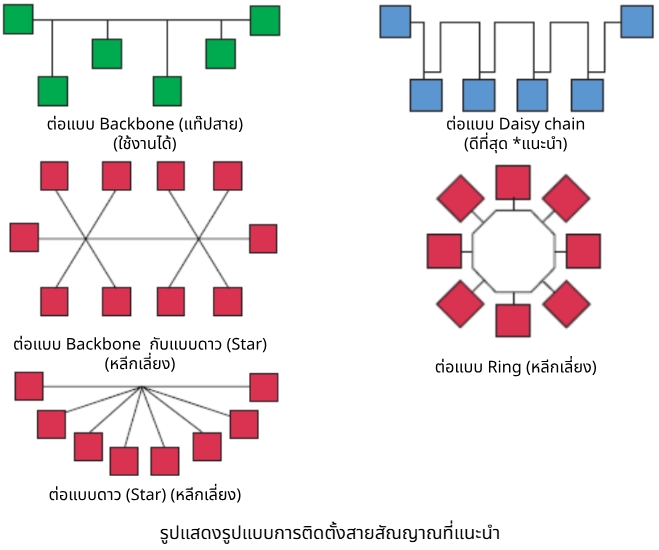 การติดตั้ง Repeater ตามคุณสมบัญติของ RS-485 เมื่อใช้งานกับสาย 18AWG Twist Pair + Shied สามารถส่ง End to End ได้ไกลสุด 1.2Km เนื่องจากข้อจำกัดเรื่องราคาและความคุ้มค่าที่สุด Creative Power จึงเลือกใช้งาน สาย 0.75 sq.mm. Twist Pair + Shied ที่ใกล้เคียงกันการติดตั้ง Repeater จะคำนึงอยู่ 3 ปัจจัยหลักๆ แบ่งได้ตามสายสัญญาณ 2 ประเภท ดังนี้ 1. สาย 0.75 sq.mm. Twist Pair + Shied 1.1 ระยะทาง ระยะทางนับจาก อุปกรณ์ Gateway ถึงอุปกรณ์ ตัวสุดท้ายจะต้องไม่เกิน 600 เมตร 1.2 จำนวนอุปกรณ์ในระบบ จำนวนอุปกรณ์ในระบบ จะต้องไม่เกิน 30 ตัว 1.3 จุดติดตั้ง ต้องห่างจากสายไฟฟ้าอย่างน้อย 1 โวลท์ต่อ 0.1 มม. (L-N) 2. สาย 0.5 sq.mm. Twist Pair + Sliver Alloy 2.1 ระยะทาง ระยะทางนับจาก อุปกรณ์ Gateway ถึงอุปกรณ์ ตัวสุดท้ายจะต้องไม่เกิน 20 เมตร และทั้งระบบรวมกันต้องไม่เกิน 120 เมตร 2.2 จำนวนอุปกรณ์ในระบบ จำนวนอุปกรณ์ในระบบ จะต้องไม่เกิน 30 ตัว 2.3 จุดติดตั้ง ต้องห่างจากสายไฟฟ้าอย่างน้อย 1 โวลท์ต่อ 0.25 มม. (L-N)
